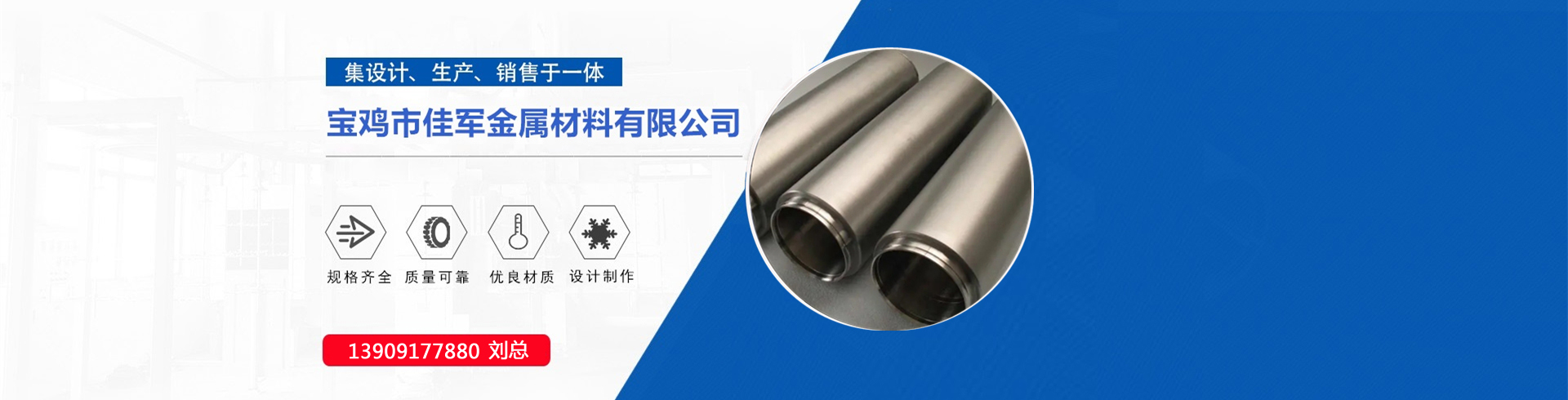 寶雞市佳軍金屬材料有限成立于2008年,位于中國鈦谷之稱的陜西-寶雞,公司成立到現在已經成為有色金屬行業的一枝獨秀。